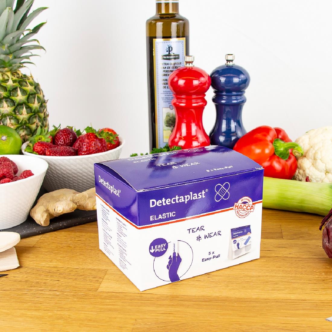 Blaue detektierbare Pflaster, Gastronomiepflaster, werden in vielen Bereichen der Lebensmittelzubereitung eingesetzt, von Sandwich-Läden über Metzgereien und Kuchenhersteller bis hin zu großen Lebensmittelproduktionslinien.