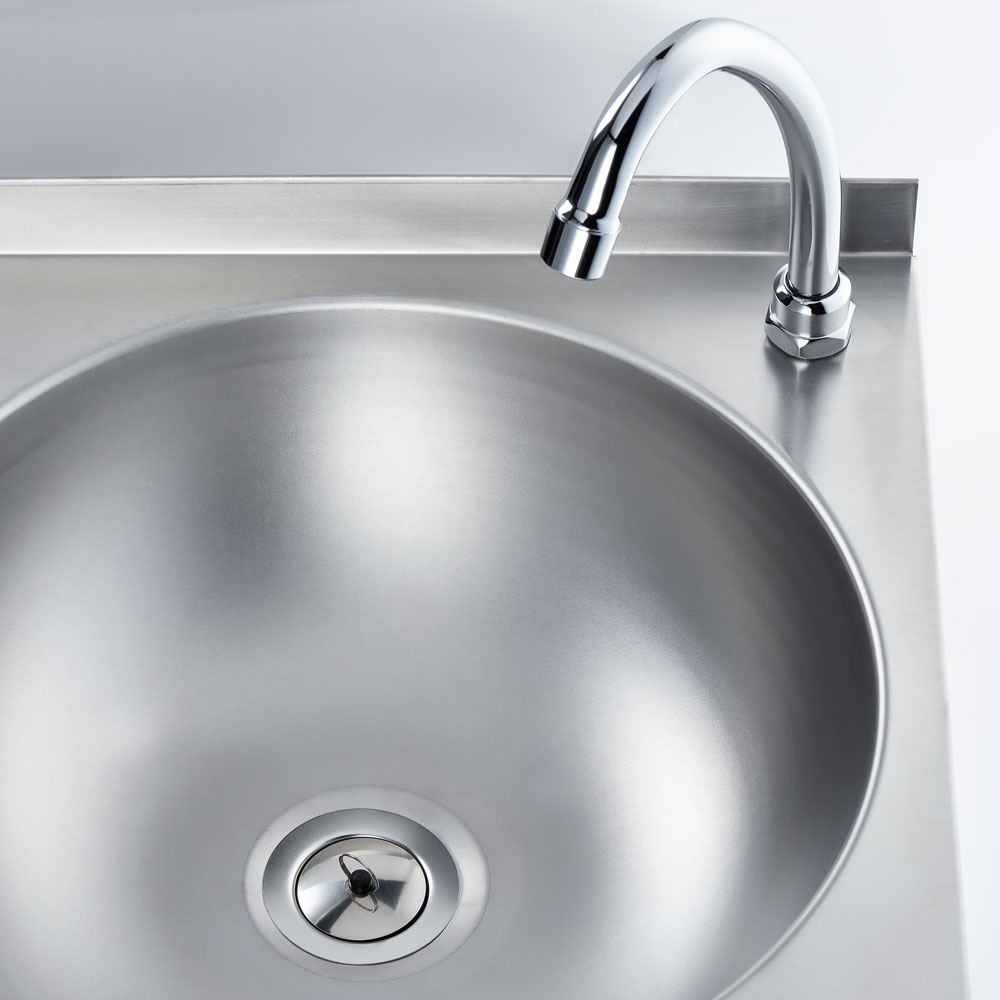 Edelstahl Handwaschbecken mit Kniebedienung, inkl. Armatur, Wandmontage, 400 mm x 400 mm x 225 mm (BxTxH)