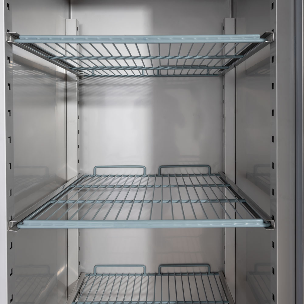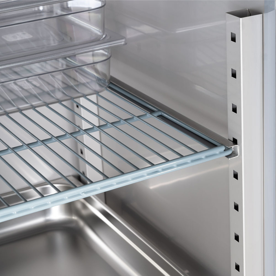 Wenn Sie mehr Platz und Ordnung in Ihren Kühlgerät benötigen, stocken Sie auf mit dem passenden, plastifizierten GN 2/1-Rost.