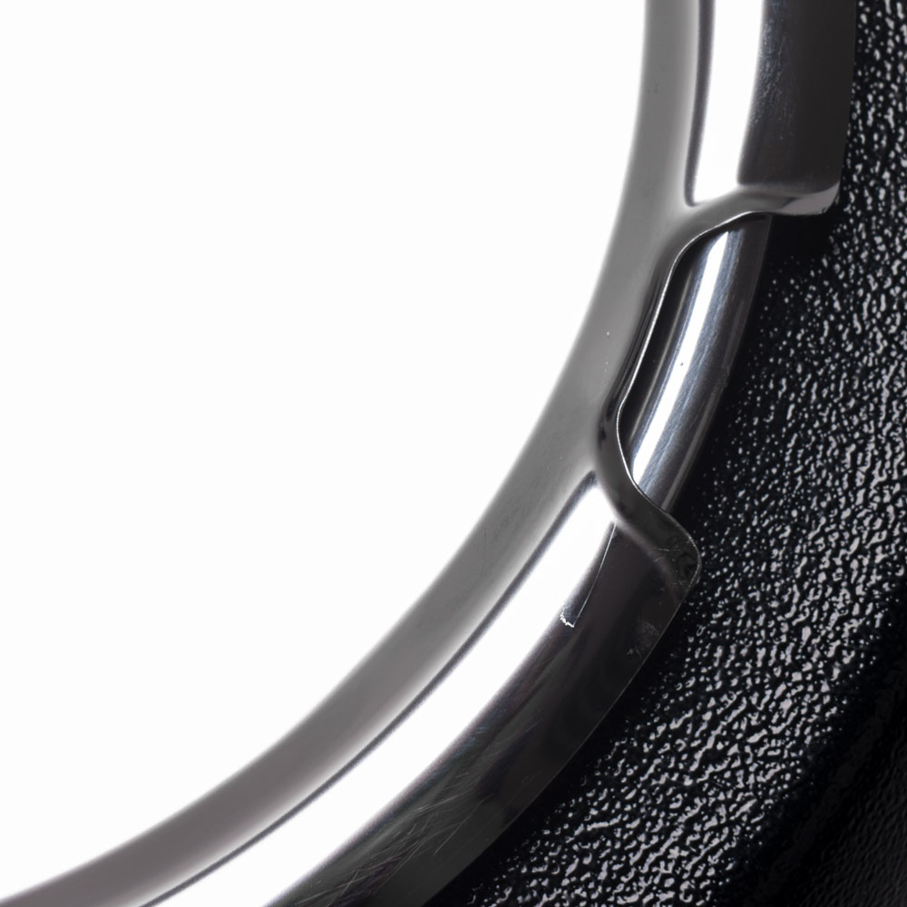 - schwarzes Gehäuse aus lackiertem Stahl