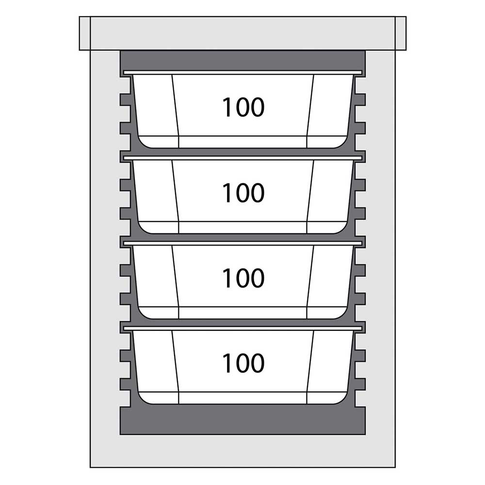 - 12 Einschubleisten für GN 1/1, 1/2, 1/3
