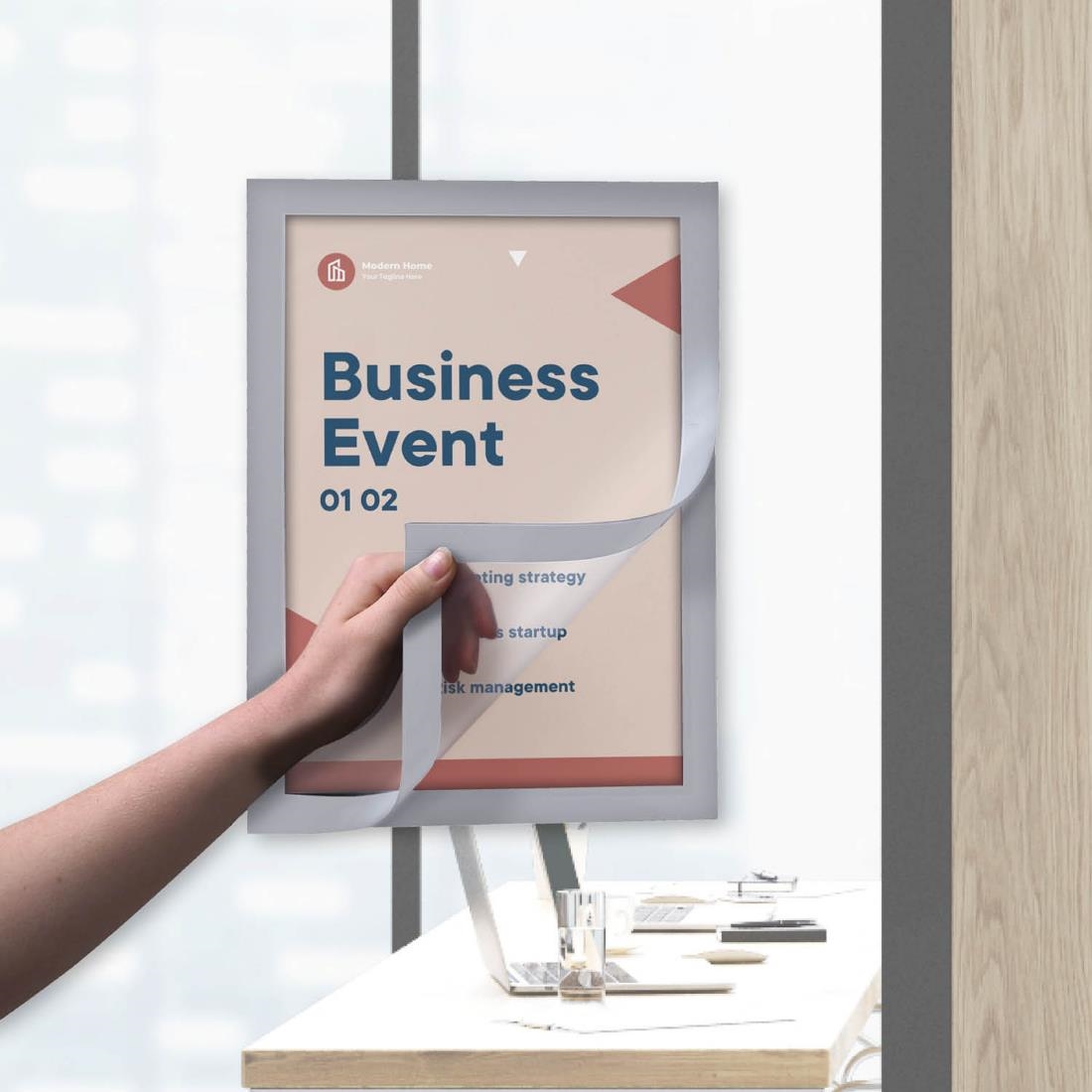 - Klare Anzeige: Der selbstklebende Rahmen sorgt für eine klare und ungehinderte Sicht auf Ihre Dokumente.