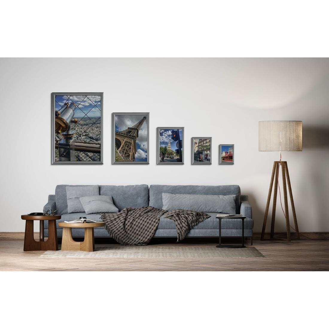 - Profile aus hochwertigem eloxiertem Aluminium mit Gehrungsecken und Rückseite aus Polypropylen