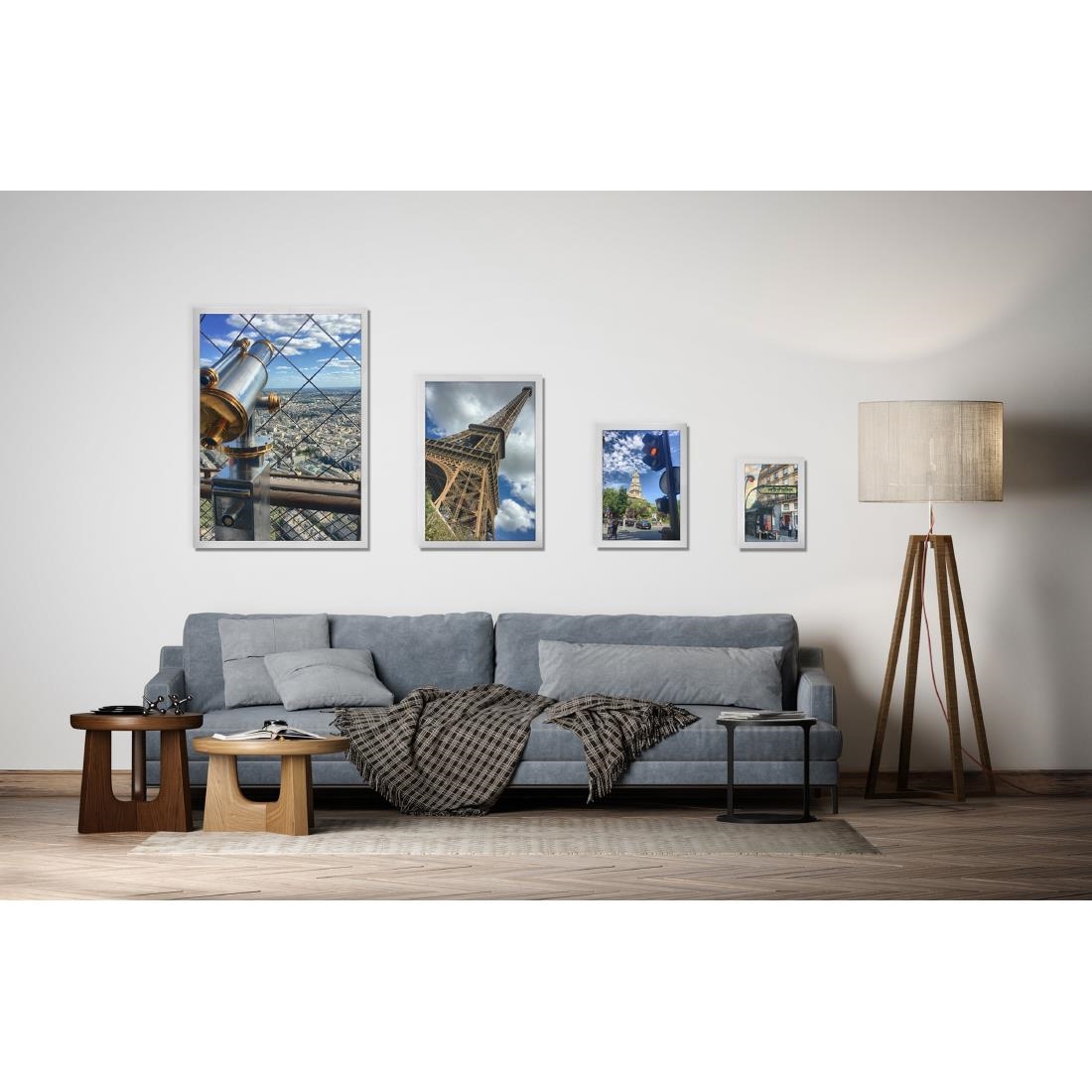 - Profile aus hochwertigem eloxiertem Aluminium mit Gehrungsecken und Rückseite aus Polypropylen
