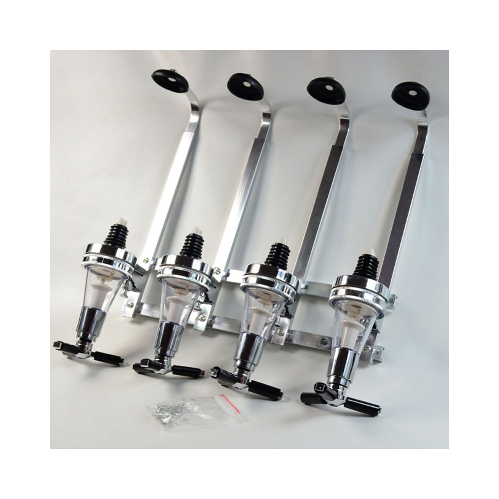 Dieser Flaschenhalter für die Regalmontage mit Dosierausgießer ist das ideale Utensil für jede Bar, in der es auf präzises Dosieren und saubere Arbeitsflächen ankommt, und bietet Platz für bis zu vier Flaschen.Mit seinen tropffreien 30 ml Dosierausgießern ermöglicht er ein exaktes und gleichmäßiges Dosieren von Spirituosen und anderen Zutaten, so dass jedes Cocktailrezept perfekt nach Maß zubereitet werden kann.Der Flaschenhalter lässt sich leicht an einem Regal befestigen, so dass die Flaschen platzsparend und übersichtlich aufbewahrt werden können und die Bar stets ordentlich und effizient aussieht.Der Wandflaschenhalter ist aus hochwertigem Aluminium gefertigt, was Langlebigkeit und Robustheit bei geringem Gewicht garantiert. Das moderne Metalldesign passt perfekt in jede Bar.