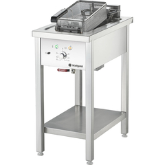 Stalgast Edelstahl Elektro-Fritteuse als Standgerät, Unterbau offen Die Fritteuse ist absolut einfach in der Bedienung und der Umgang ist auch für ungelernte Mitarbeitern sofort verständlich. Fritteuse anschalten, ca. sechs Minuten warten und schon kann die erste Portion Lebensmittel frittiert...