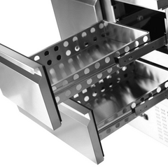Vaiotec 2er Schubladenset für Kühltische Links 2er Schubladenblock für EASYLINE Kühltisch 700 passend für GN 1/1 Behälter mit max. Tiefe von 150 mm max. 50 kg Tragkraft pro Schublade Innenmaße (BTH): 304 x 537 x 140 mm