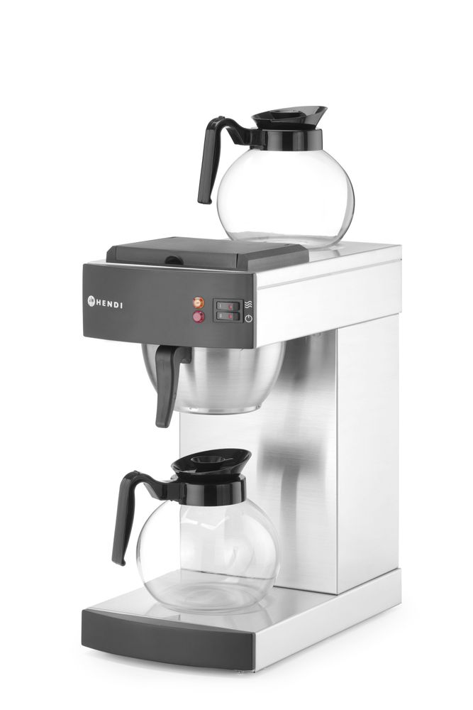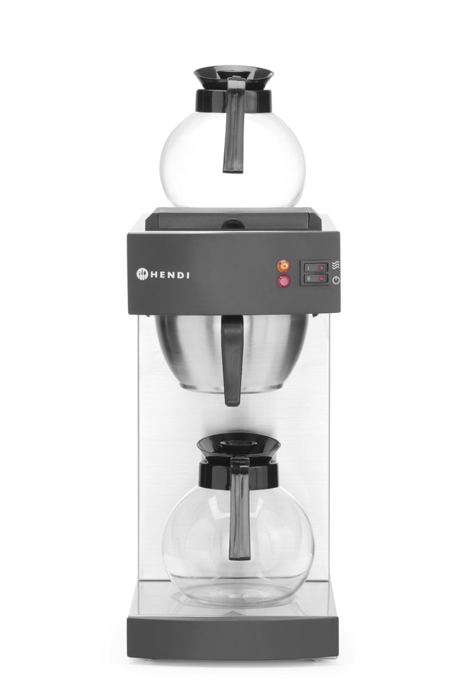Die HENDI Filterkaffeemaschine ist mit zwei 1,8-l-Dekantern und Papierfiltern für schnellen Service und einfache Reinigung zwischen den Brühen ausgestattet. Das robuste Edelstahlgehäuse und die Heizplatten sorgen für eine lange Lebensdauer, während die eingebauten Sicherheitsfunktionen für Zuverlässigkeit sorgen.