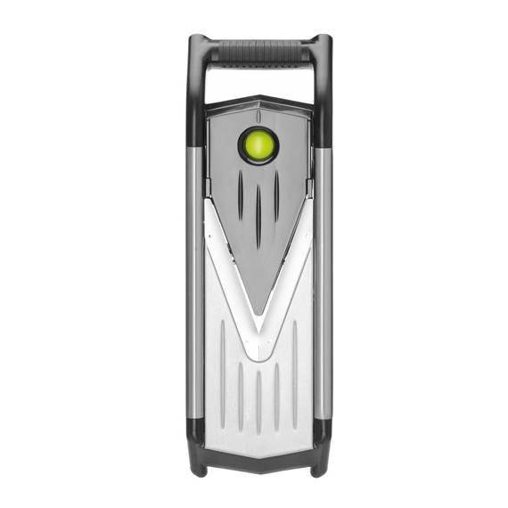 Die HENDI Mandoline V-förmig ist ein sehr einfach zu bedienendes Werkzeug zum präzisen und leichten Schneiden und Zerteilen von Obst und Gemüse. Die Mandoline ist dank der austauschbaren Einsätze, mit denen sich die Schnittstärke und die Julienne-Breite einstellen lassen, multifunktional. Das im Lieferumfang enthaltene Zubehör, wie Fingerschutz und Klingenaufbewahrungsbox, erhöht den Komfort und die Verwendungssicherheit.