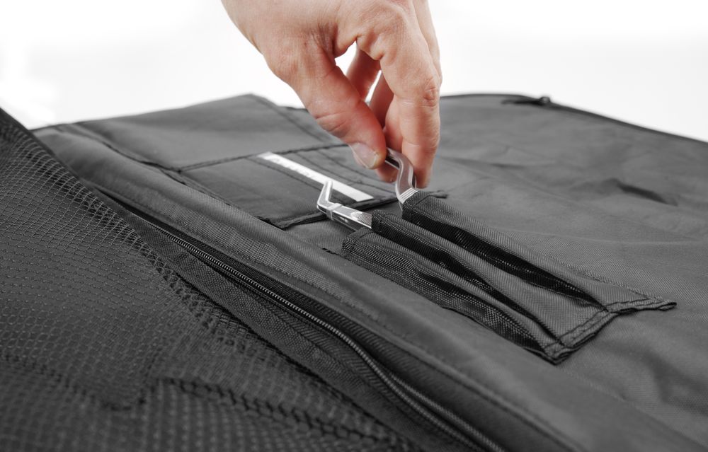 Kompaktes Etui mit viel Platz für Messer und Zubehör. Bietet Platz für 10 Messer (maximale Länge 450 mm), die Messer werden durch ein Gummiband gehalten. Die Messer sind durch zusätzliche Abdeckungen geschützt, die entweder mit einem Zipper oder einem Klettverschluss fixiert sind. Dies stellt sicher, dass die Messer keinen direkten Kontakt zueinander haben, wenn das Etui geschlossen ist. Mit 1 großen Tasche für Notizblöcke, 4 kleinen Taschen für Visitenkarten und Platz für 3 Stifte oder andere kleine Accessoires. Die Schultergurtlänge kann zwischen 770 mm und 1270 mm eingestellt werden. Abmessungen ungefaltet: 515x675 mm. Die Messer sind nicht im Lieferumfang enthalten.