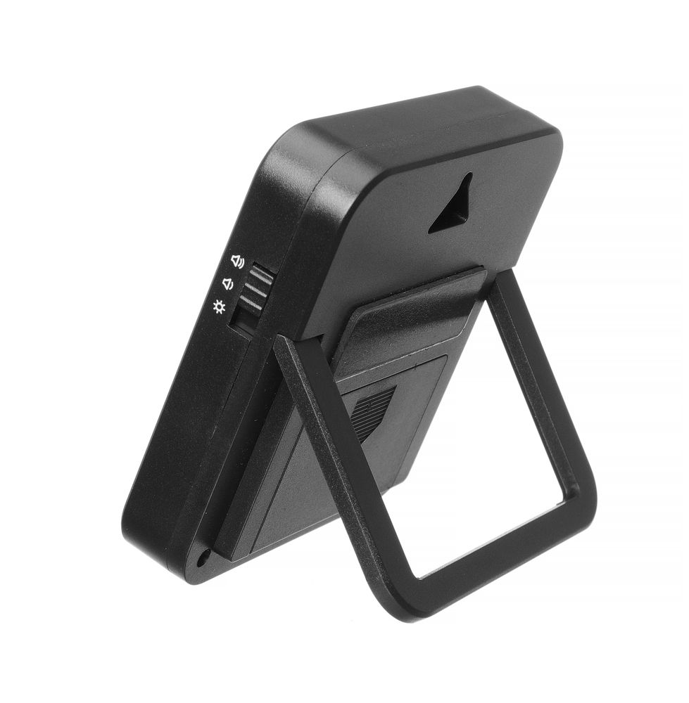 - Kann verwendet werden: auf einem ausklappbaren Ständer stehend, an einer Wand hängend oder auf einer Metalloberfläche
