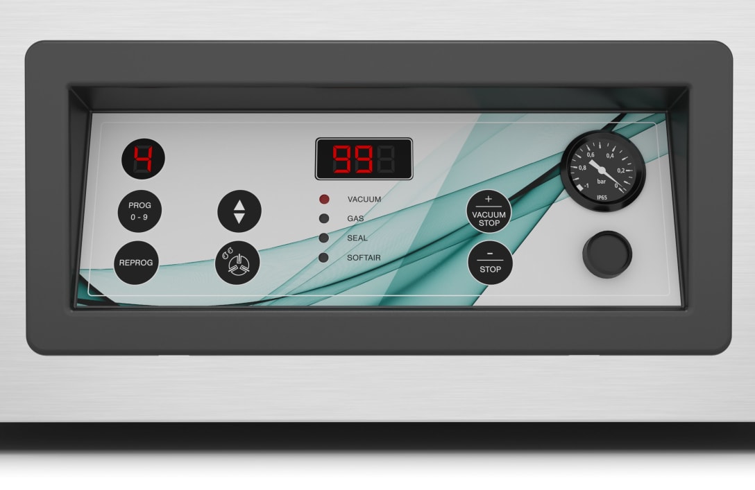 Mit der Sensorsteuerung ausgestattete Vakuumverpackungsmaschinen berechnen, wann der voreingestellte Prozentsatz erreicht wurde. Mit anderen Worten, das gewünschte Endvakuum wird unabhängig vom Volumen immer erreicht. Das ist der Hauptvorteil von Henkelmans Option Sensorsteuerung. Sehr praktisch zum Vakuumverpacken verschiedener Mengen und Arten von Produkten.