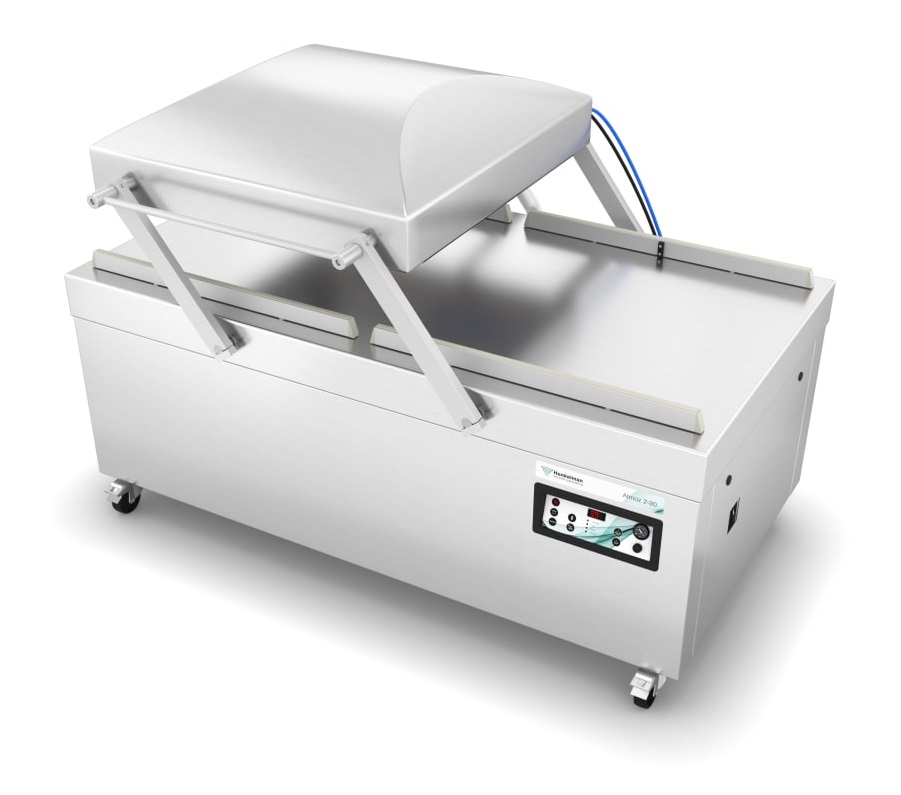 Die Atmoz-Baureihe von Henkelman repräsentiert die gesamte Bandbreite der Ein- und Doppelkammermodelle zur Optimierung sämtlicher Vakuum-Verpackungsprozesse. Geeignet für Food-und Non-food-Anwendungen. Aufgrund der Konstruktion von Deckel und Arbeitsplatte hat Atmoz im Vergleich zu anderen Baureihen langere Schweissleisten.