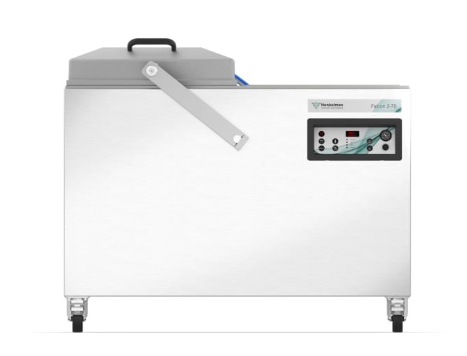 Alle Henkelman Falcon-Modelle sind mit einer Aluminiumvakuumkammer und einem Aluminiumdeckel ausgestattet. Darüber hinaus verfügt der Deckel über ein Sichtscheibe zur Überwachung des Verpackungszyklus.