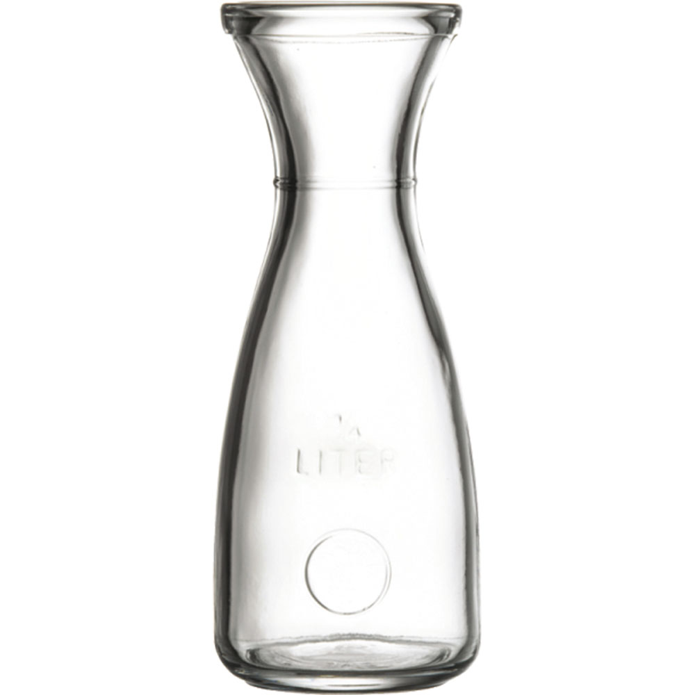 Klassische Weinkaraffe, die mit 250 ml einen sog. Quartino fasst.Das Reliefmedaillon aus Trauben darf bei dieser Form natürlich nicht fehlen.Die durable Karaffe aus farblosem Glas ist durch den verjüngten Hals sehr handlich und der Wein kann tropffrei serviert werden.Die schmale Linie am Hals zeigt Ihnen die richtige Füllmenge an.