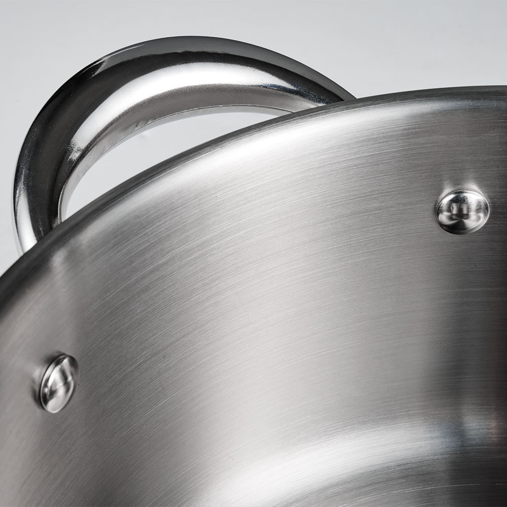 Das 9-teilige Kochset aus satiniertem Edelstahl bietet alles, was eine gut ausgestattete Küche braucht - von der kleinen Stielkasserolle bis zum großen Kochtopf inklusive antihaftbeschichteter Bratpfanne. Durch den gekapselten Sandwichboden (Edelstahl-Aluminium-Edelstahl) wird die Wärme gleichmäßig verteilt und effizient gespeichert - für energiesparendes und präzises Kochen auf Induktions-, Gas- und Elektroherden.Die Kaltgriffe bleiben während des Kochvorgangs kühl und können so ohne Topflappen oder Ofenhandschuhe angefasst werden. Die im Set enthaltenen Glasdeckel ermöglichen jederzeit einen Blick ins Topfinnere. Für eine besonders einfache Reinigung ist das gesamte Set spülmaschinengeeignet.