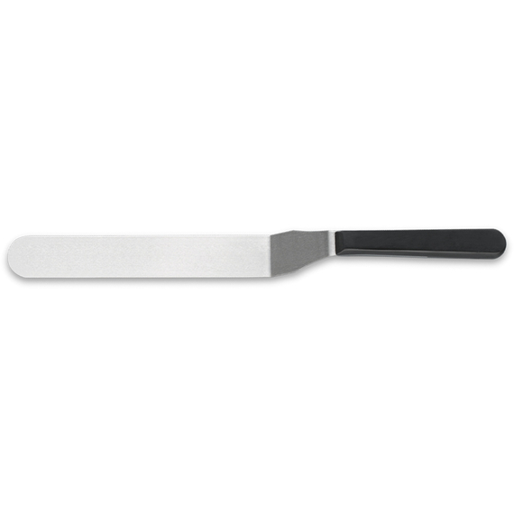 Essenzielles Hilfsmittel für Konditoren und Hobbybäcker, um Teige, Cremes oder Füllungen zu verteilen und glatt zu streichen. Die Klinge hat eine Länge von 200 mm bis zum Knick. Der gerundete Griff liegt angenehm in der Hand.