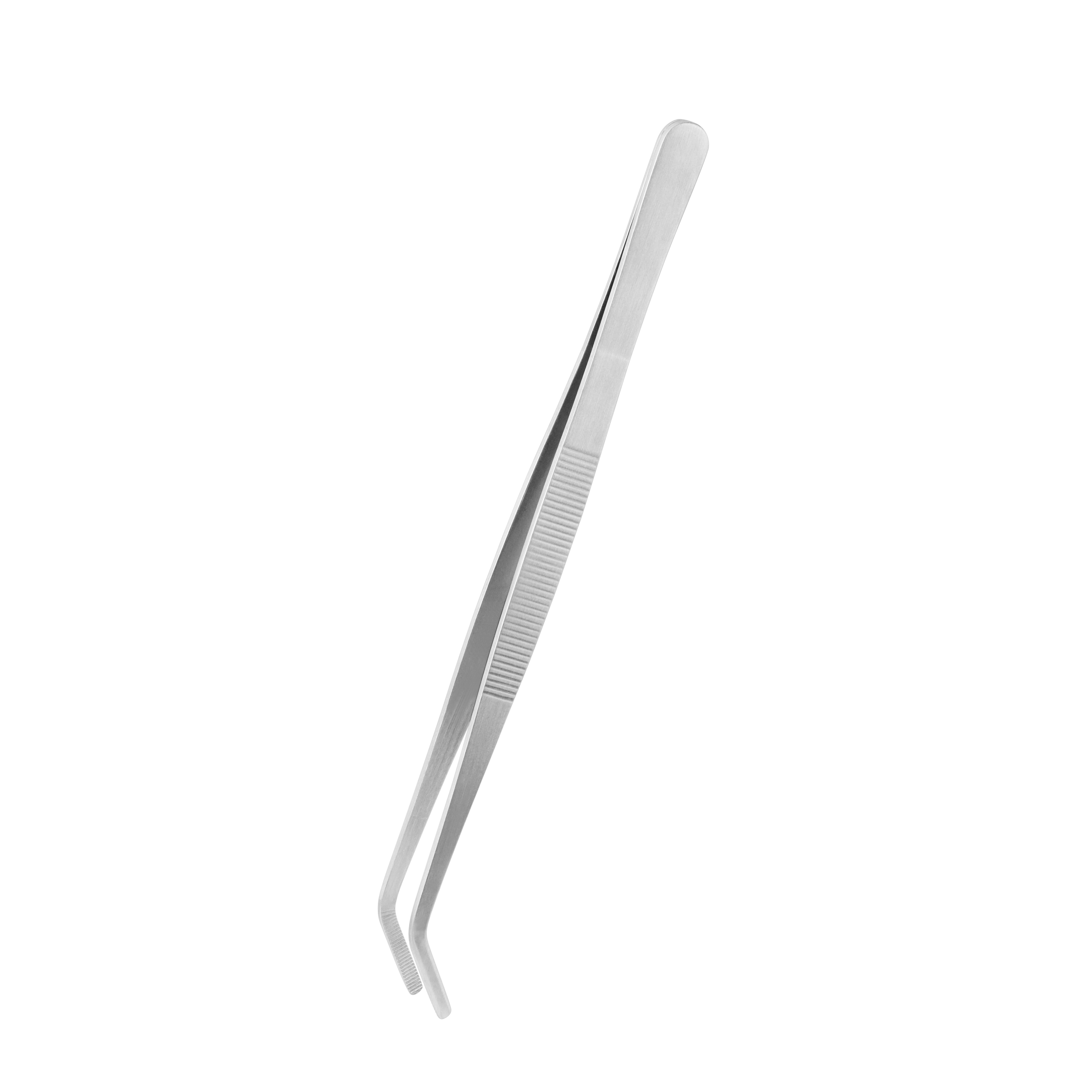 Diese Küchenpinzette ist das ideale Werkzeug zum präzisen Anrichten und filigranen Dekorieren von Speisen.Mit einer Länge von 250 mm ist die Pinzette ideal für feinste Arbeiten und hilft, auch kleinste Details in der Küche präzise zu platzieren.Die gebogene Form der Pinzette ermöglicht eine bessere Erreichbarkeit und eine noch präzisere Handhabung, ideal zum Anrichten von Kräutern, Blüten oder speziellen Zutaten auf Tellern.Der geriffelte Bereich der Pinzette sorgt für eine sichere Handhabung und eine gute Haptik, so dass die Pinzette bequem und kontrolliert eingesetzt werden kann, ohne dass sie aus der Hand rutscht.Die Pinzette ist aus hochwertigem Edelstahl gefertigt, was Langlebigkeit, Korrosionsbeständigkeit und Hygiene gewährleistet. Sie ist robust und hält den Anforderungen in der professionellen Küche stand.
