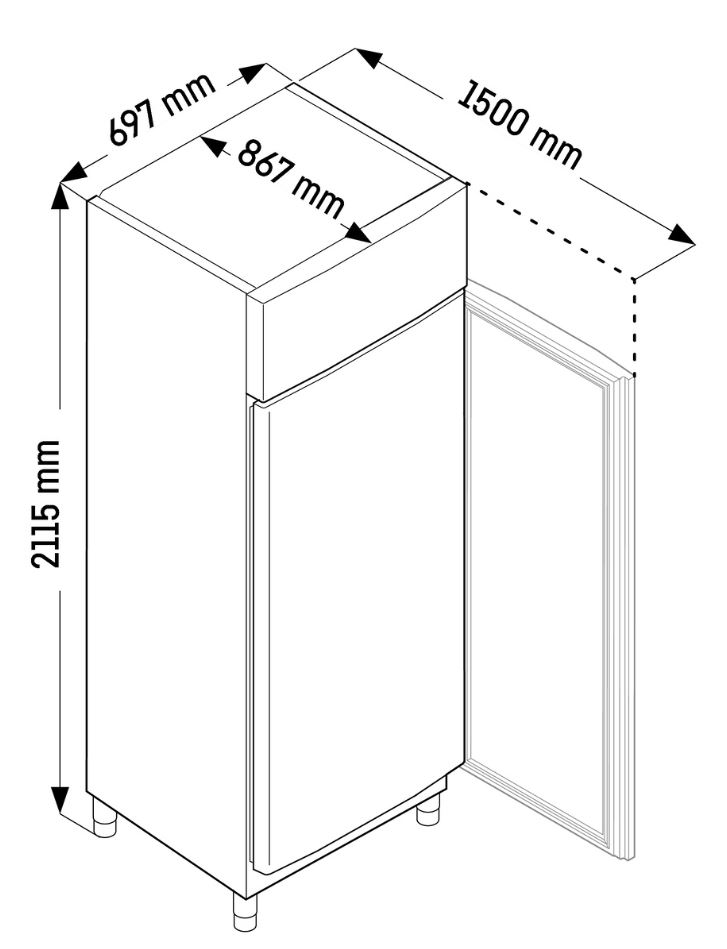| Außenmaße: Höhe / Breite / Tiefe | 211,5 / 69,7 / 86,7 cm |