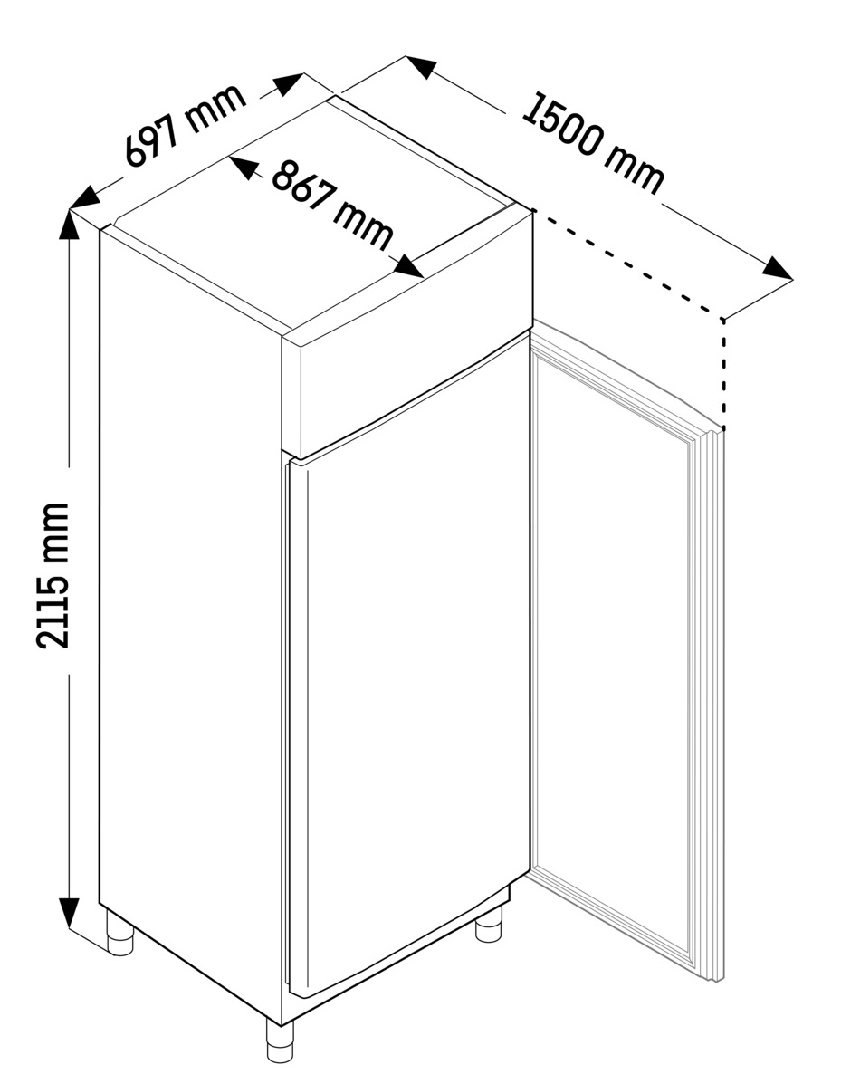 | Außenmaße: Höhe / Breite / Tiefe | 211,5 / 69,7 / 86,7 cm |
