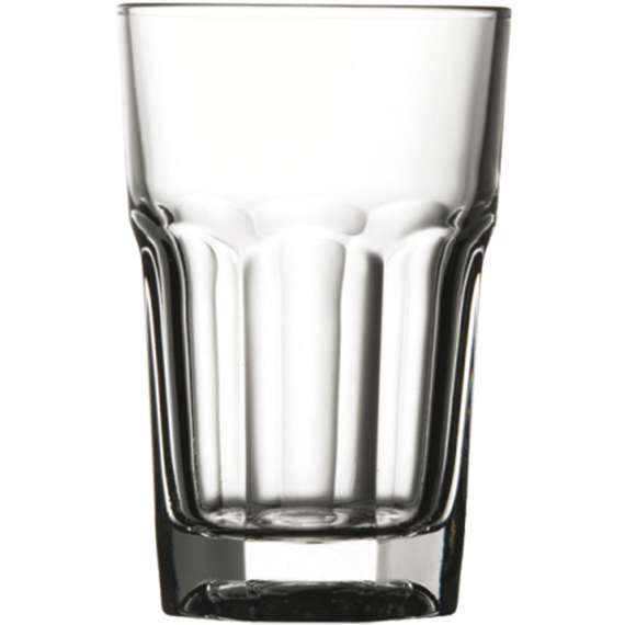 Wählen Sie mit dem Trinkglas der Serie Casablanca ein Must-Have für Ihren professionellen Service in Bar, Restaurant, Catering, Kneipe oder auf Festivals.Das gehärtete, klare Glas ist äußerst robust und widerstandsfähig gegen mechanische und thermische Belastungen. Servieren Sie sowohl kalte als auch warme Getränke in diesem Allrounder, wie z.B. Longdrinks, Limonaden oder Milchcafé, denn durch das dicke Glas bleiben die Getränketemperaturen länger konstant.Durch den facettierten Korpus ist das Glas besonders griffsicher und leicht zu stapeln. Rundum das perfekte Glas für jede Gelegenheit!