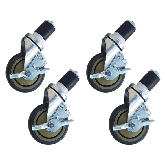 Arbeitstisch-Räder 4 Stück - mit Bremsen - 5 Zoll / 12,7 cmMachen Sie Ihren Arbeitsplatz mobil mit diesen robusten 12,7 cm (5-Zoll) Maxima-Rollen mit Bremse. Speziell für Maxima-Arbeitstische aus Edelstahl entwickelt. Die Bremse sorgt dafür, dass der Tisch fest an seinem Platz bleibt - ideal für dynamische Küchen oder flexible Vorbereitungsbereiche. Diese langlebigen Rollen sind einfach zu montieren und erhöhen den Komfort. Eine perfekte Mischung aus Mobilität und Stabilität.