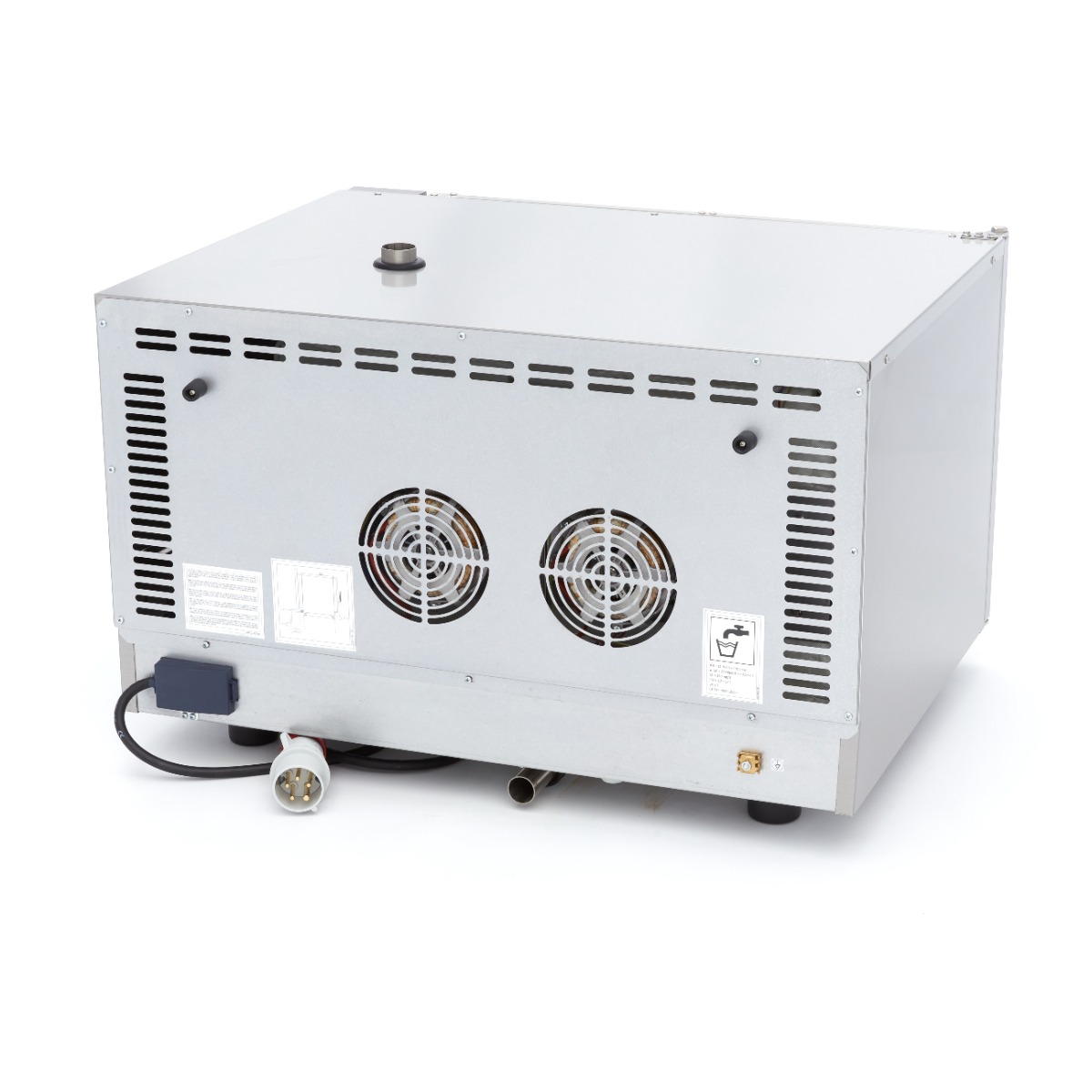 Bequeme BedientastenDieser Kombidämpfer verfügt über leistungsstarke Heizelemente aus Edelstahl, die für eine vollständige und effiziente Wärmeverteilung sorgen, damit Fleisch und Fisch gleichmäßig garen. Darüber hinaus ist der Kombidämpfer mit zwei Gebläsen mit Umkehrfunktion und doppelter Wärmeschutzverglasung ausgestattet. Die Tür lässt sich sehr leicht verstellen, und die Türdichtung besteht aus lebensmittelechtem Silikon. Eine Innenbeleuchtung macht es einfach, den Fortschritt des Garvorgangs zu erkennen. Das Gerät verfügt über einen Wassereinlass mit Ventil für die Dampferzeugung und einen Wasserauslass. Es ist ein vollständig anpassbares Gerät mit einfachen analogen Bedienelementen. Es gibt eine Taste zur Steuerung des Timers, des Temperaturbereichs und der Dampfmenge. Außerdem gibt es eine Temperaturanzeige, die anzeigt, ob der Combi-Dampfgarer die eingestellte Temperatur erreicht hat. Die letzte Taste dient zur Einstellung der Dampfregulierung.