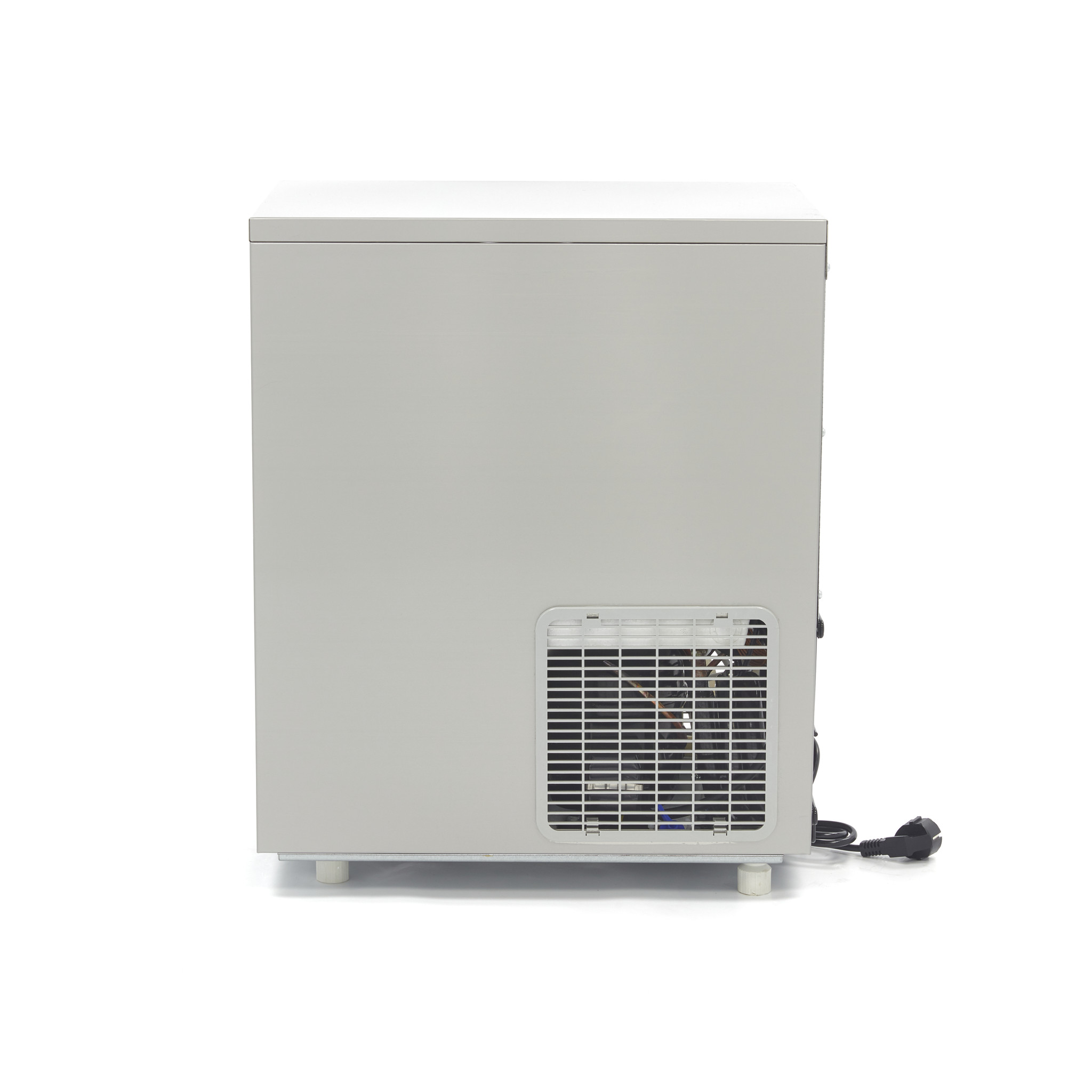 Inklusive KontrollleuchtenDieser professionelle Eiswürfelbereiter ist an der Rückseite wassergekühlt, sodass er auch in warmen Räumen oder im Freien verwendet werden kann. Auf dem Bedienfeld befinden sich mehrere Kontrollleuchten, die Sie auf einen vollen Vorratsbehälter, einen zu niedrigen Wasserstand oder auf eventuelle Fehler oder Störungen hinweisen. Dies ist wichtig, damit Sie genau wissen, welche Maßnahmen Sie ergreifen müssen, damit die Produktion von Eiswürfeln so schnell wie möglich fortgesetzt werden kann. Außerdem ist der Eiswürfelbereiter mit einem Überlastungsschutz ausgestattet, so dass Sie sicher weiterarbeiten können und sich keine Sorgen um eine Überlastung des Geräts machen müssen. Das effiziente Kühlsystem sorgt dafür, dass die Eiswürfel gut geformt und von hoher Qualität sind. Das für diese Maschine verwendete Kältemittel ist R290. Diese professionelle Eismaschine wird mit Versorgungsschläuchen geliefert, die an eine Trinkwasserversorgung angeschlossen werden müssen. Die Eismaschine ist nicht mit einer Ablasspumpe ausgestattet. Der Abflussschlauch sollte tiefer als der Auslass der Maschine angeschlossen werden.