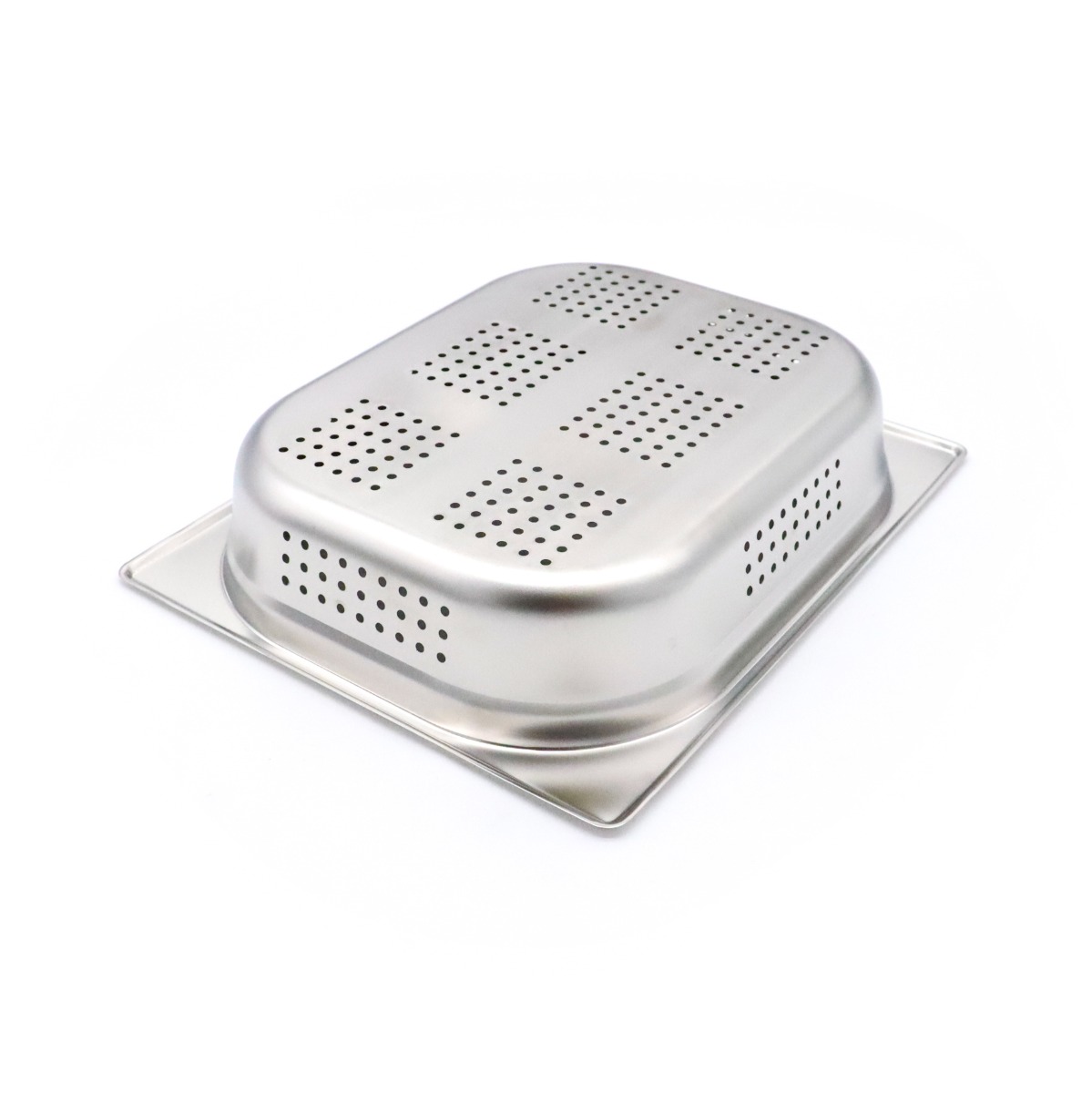 Gemüse abtropfen lassenUm dem GN-Behälter zusätzliche Festigkeit zu verleihen, hat er gefaltete Kanten und abgerundete Ecken. Darüber hinaus ist der gelochte Gastronorm-Behälter sicher im Gebrauch und lässt sich hervorragend stapeln. Das spart wertvollen Platz in Speisekammer, Kühlschrank und Gefrierschrank. Gut zu wissen ist auch, dass der GN-Behälter die europäischen Anforderungen an die Lebensmittelsicherheit erfüllt. Dank der kleinen Löcher im Boden und an den Seiten können Sie den Behälter zum Abtropfen von Gemüse und anderen Lebensmitteln verwenden.