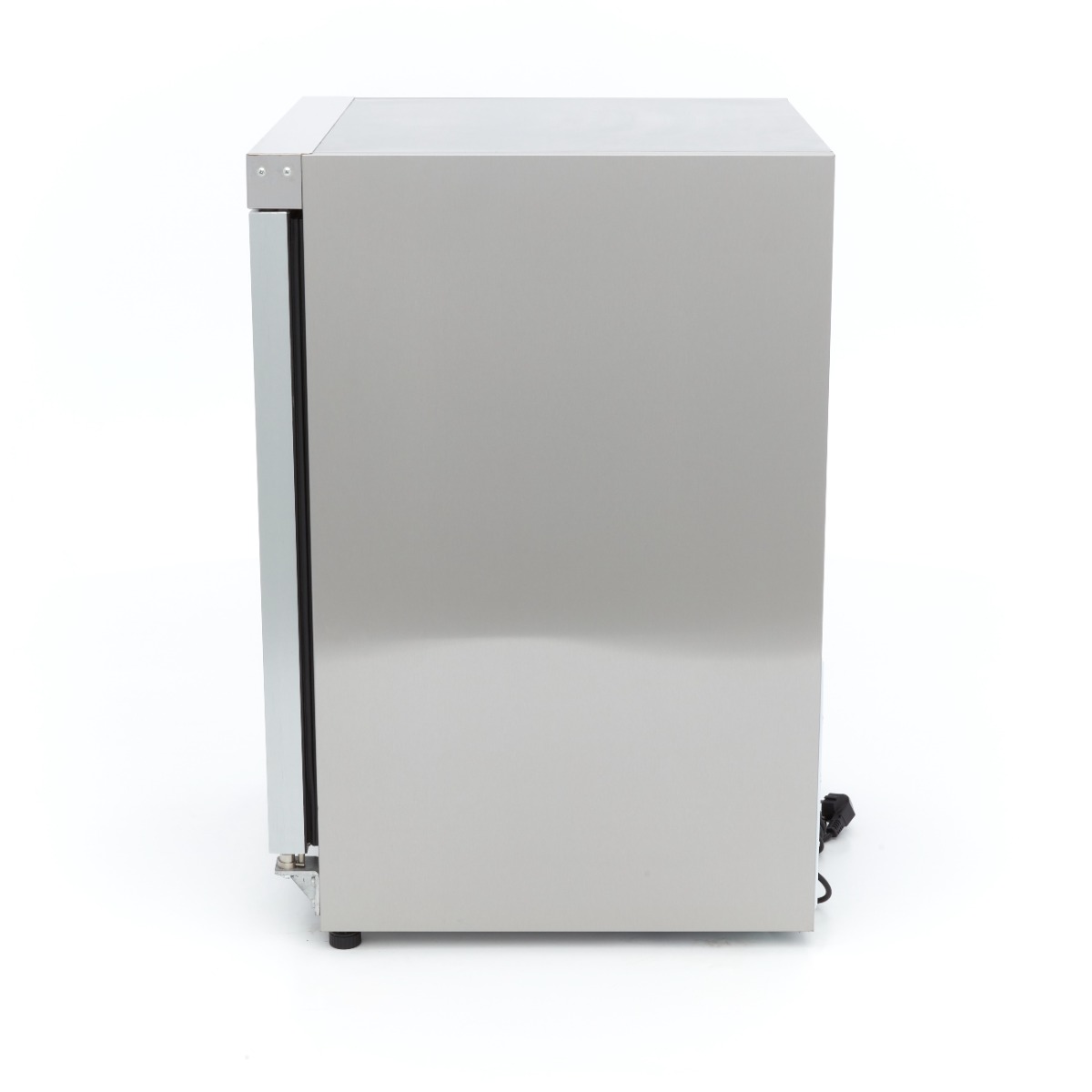 Leicht zu reinigenDas Gehäuse dieses Gefrierschranks ist aus rostfreiem Stahl gefertigt und lässt sich leicht reinigen. Zur Reinigung der Außenseite verwenden Sie einfach ein feuchtes Tuch und ein mildes Reinigungsmittel. Die Innenseite kann nach dem Abtauen des Gefrierschranks gereinigt werden. Nehmen Sie zum Abtauen alle Gegenstände heraus und ziehen Sie den Stecker aus der Steckdose. Um das Abtauen zu beschleunigen, entfernen Sie das Eis vorsichtig mit einem Eisschaber aus Kunststoff. Nach der Reinigung mit warmem Wasser und einem weichen Tuch trocknen Sie das Gefriergerät gründlich ab, bevor Sie es wieder einschalten.