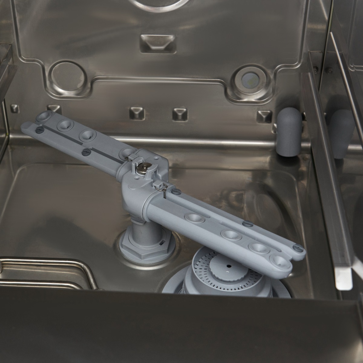 Dieser professionelle Geschirrspüler ist eine leise, leistungsstarke Maschine mit einem großen Griff. Sie arbeitet extrem schnell und sorgt dafür, dass das Geschirr so schnell wie möglich wieder einsatzbereit ist. In nur 120 Sekunden sind die Gläser und das Kleingeschirr gereinigt und mit heißem Wasser abgespült, bereit für den nächsten Einsatz.