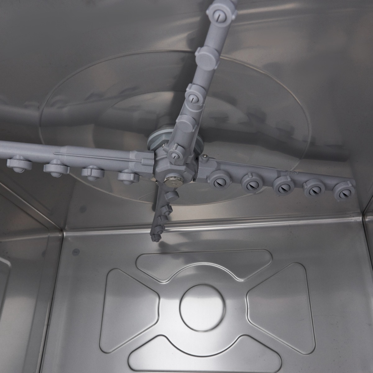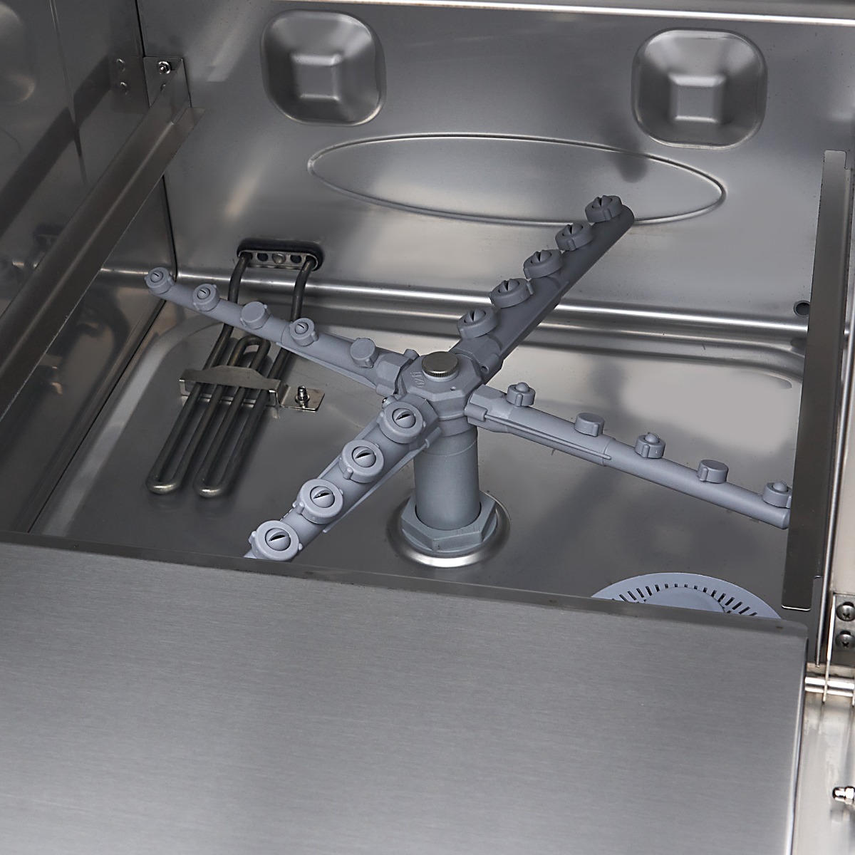 In Profiküchen ist ein schneller und effizienter Geschirrspüler für die tägliche Geschirrreinigung unverzichtbar. Unser Geschirrspüler bietet drei komplette Spülprogramme von 55, 105 und 195 Sekunden sowie eine Pausenfunktion und eine übersichtliche Digitalanzeige. Nach dem Reinigungsvorgang wird das Geschirr mit heißem Wasser abgespült und schnell getrocknet, damit es für den nächsten Gebrauch bereit ist. Dieser Geschirrspüler arbeitet mit einem Geräuschpegel von weniger als 70 dB und ist damit sehr leise.