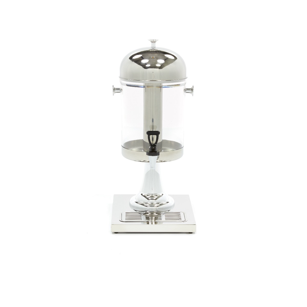 Dieser stilvoll gestaltete Getränkespender eignet sich für die Präsentation von Saft, Slushies und anderen Getränken. Er kann auch als Selbstbedienungsoption in Gastronomiebetrieben zur Selbstbedienung verwendet werden. Zum Beispiel bei Frühstücksbuffets in Hotels oder auf der Getränkeinsel in Fastfood-Restaurants und Cafeterias. Dieser Getränkespender eignet sich auch für den Ausschank von eiskaltem Wasser, Softdrinks und frisch zubereiteter Limonade. Dieser Getränkespender hat ein Gesamtfassungsvermögen von 8 l. Sie können ihn mit Gläsern verwenden, die eine maximale Höhe von 15 cm haben.
