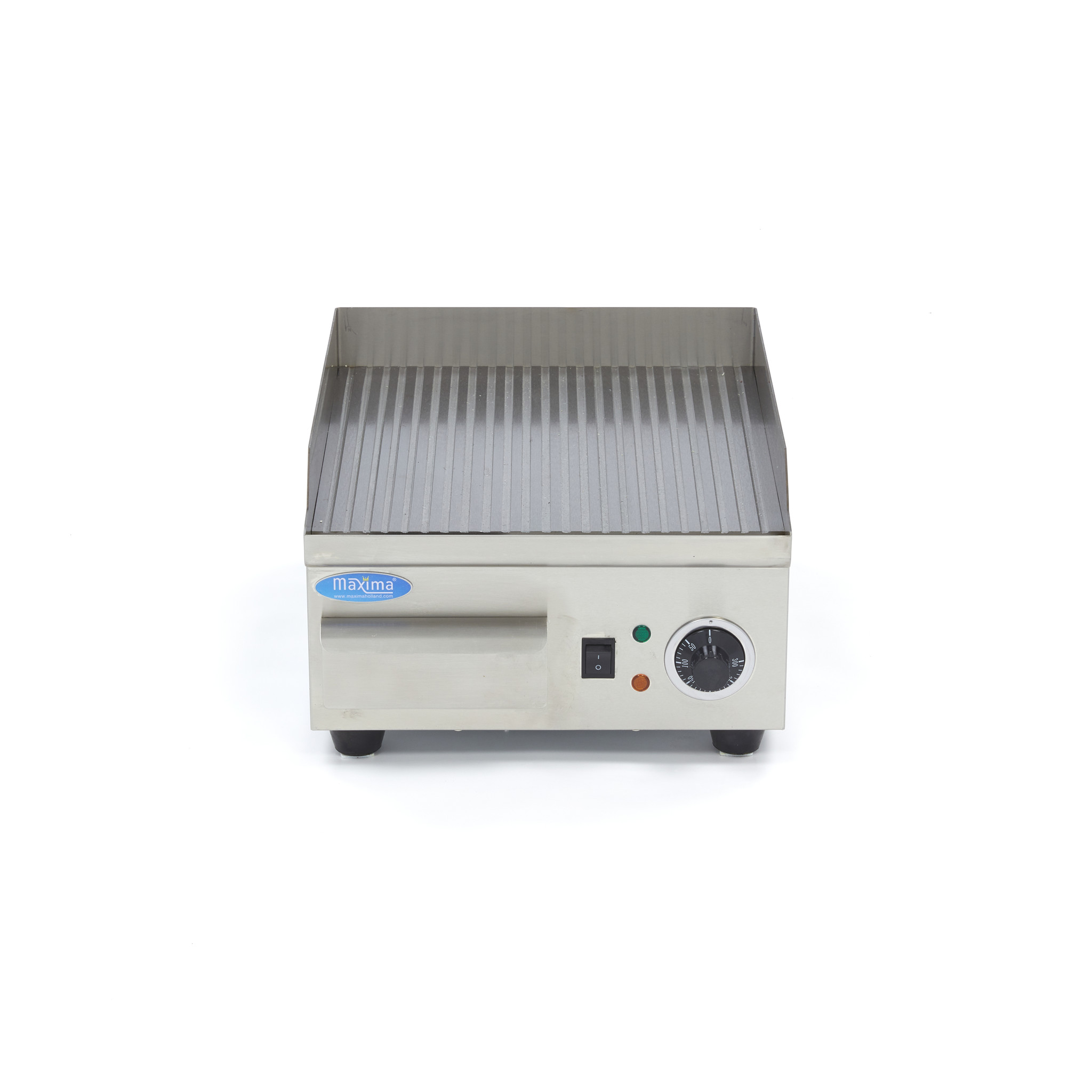 Benutzerfreundliche SteuerungDie Temperatur dieser Griddle kann zwischen 50° und 300°C eingestellt werden. Das Gerät ist außerdem mit einer Kontrollleuchte ausgestattet, die anzeigt, wann der Grill die richtige Temperatur erreicht hat und einsatzbereit ist. Trotz der hohen Temperaturen ist diese Profi-Grillplatte sicher in der Anwendung. Sie ist mit einem hohen Spritzschutz aus Edelstahl ausgestattet, um Ölspritzer zu vermeiden. Die Griddle ist sehr benutzerfreundlich. Schalten Sie sie mit dem Schalter ein, fetten Sie die Grillfläche mit Öl ein, und wenn die richtige Temperatur erreicht ist, legen Sie die Produkte auf die Grillplatte.