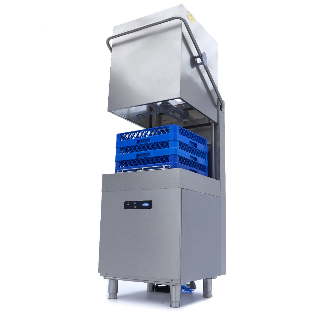 Leicht zu reinigender GeschirrspülerDieser Durchlaufgeschirrspüler ist komplett aus Edelstahl gefertigt, der sich sehr schnell und einfach reinigen lässt. Die glatten Oberflächen lassen sich mit einem feuchten Tuch abwischen. Die Spülarme auf der Innenseite sind aus speziellem ABS und können mit einem Tuch und Wasser gereinigt werden. Der Geschirrspüler ist außerdem mit einer Klarspüler- und Seifenpumpe ausgestattet.