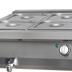 Arbeiten Sie mit Zutaten, die nicht zu heiß werden dürfen, damit sie nicht verbrennen oder sich trennen? Dann ist diese mit Gas betriebene Bain-Marie ideal, um zum Beispiel Schokolade zu schmelzen oder Soßen zu erhitzen. Es bietet eine perfekte Möglichkeit, Lebensmittel zu kochen und warm zu halten. Füllen Sie die Bain-Marie manuell mit Wasser, und der Monoblock-Wasserbehälter ist vollkommen wasserdicht. Um das Wasser zu entfernen, können Sie es schnell und einfach über den Ablasshahn ablaufen lassen.