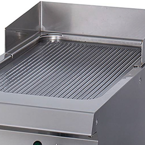 Die köstlichsten Fleisch- und Fischgerichte werden mit dieser elektrischen Hochleistungsgrillplatte mit einer einzigen gerillten Chromplatte zubereitet. Dank ihres ergonomischen Designs und des dicken Edelstahlgehäuses eignet sie sich für den intensiven Gebrauch in Profiküchen. Sie können sie auch in eine Kochzeile stellenGrillen verleiht den Gerichten, die Sie in Ihrem Restaurant, Hotel, Café oder einem anderen Gastronomiebetrieb servieren, zusätzlichen Geschmack. Was auch immer Sie auf dem Grill zubereiten, von Fleisch bis Gemüse, die Zutaten garen dank der hohen Temperaturen sehr schnell. Auf diese Weise bleiben Geschmack und Nährstoffe erhalten. Wenn Sie in einer großen und geschäftigen Küche arbeiten, ist diese Heavy Duty-Grillplatte ideal, denn sie hält lange und verträgt eine raue Handhabung. Außerdem ist Grillen eine gesündere Art des Kochens, weil man nicht viel Fett oder Öl verwenden muss. Diese Grillplatte kann allein auf einer Arbeitsplatte oder auf einem Edelstahlsockel aufgestellt werden. Sie haben die Wahl zwischen einem offenen Sockel oder einem Sockel mit Tür, die Sie einfach über unsere Website bestellen können.