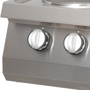 Wenn Kochgeräte jeden Tag intensiv genutzt werden, ist es wichtig, dass sie einer rauen Handhabung standhalten und lange halten. Deshalb wurde dieser zweiflammige Elektroherd für stark frequentierte Großküchen in Restaurants, Cafés und Hotels entwickelt. Das Gehäuse ist aus dickem Edelstahl gefertigt. Deshalb ist es so robust, und die äußerst langlebige Konstruktion ist ideal für den häufigen Gebrauch geeignet. Da dieses Kochfeld recht schwer ist, kann ein Edelstahlwagen mitbestellt werden.