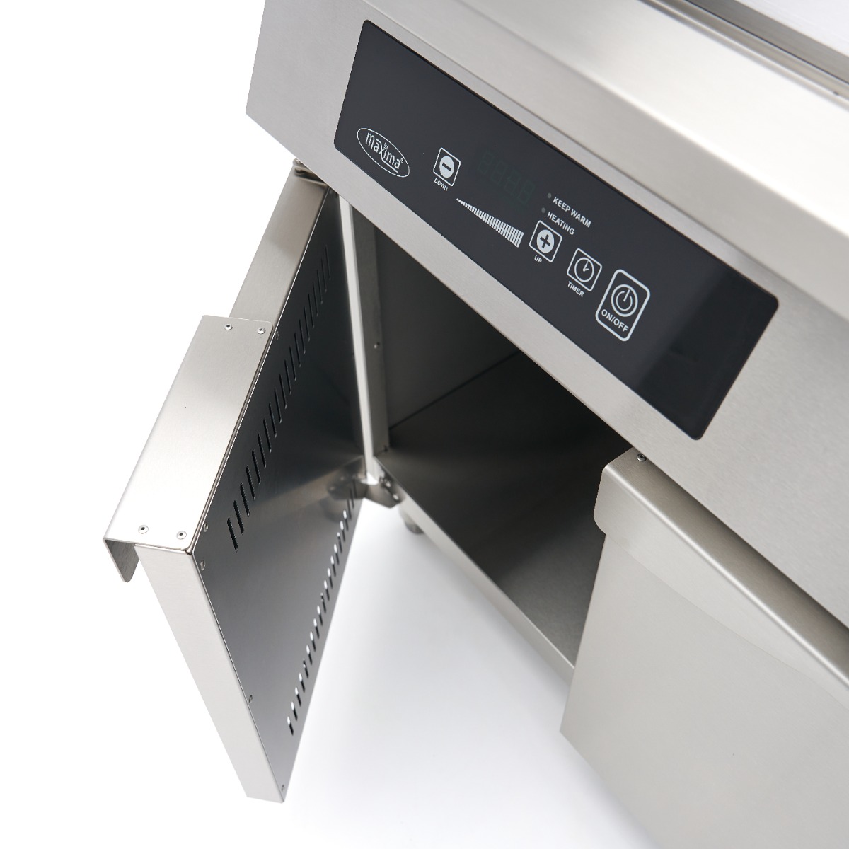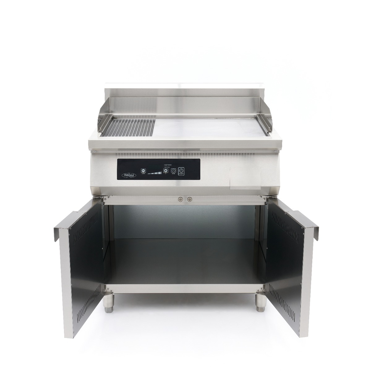 Diese robuste gewerbliche Induktionsgrillplatte mit Stauschrank vereint Effizienz, Funktionalität und modernes Design. Mit einer Grillplatte aus glattem Stahl (⅓ gerillt und ⅔ glatt) und digitaler Temperaturregelung ist sie ideal für professionelle Großküchen, Restaurants und Food Trucks.