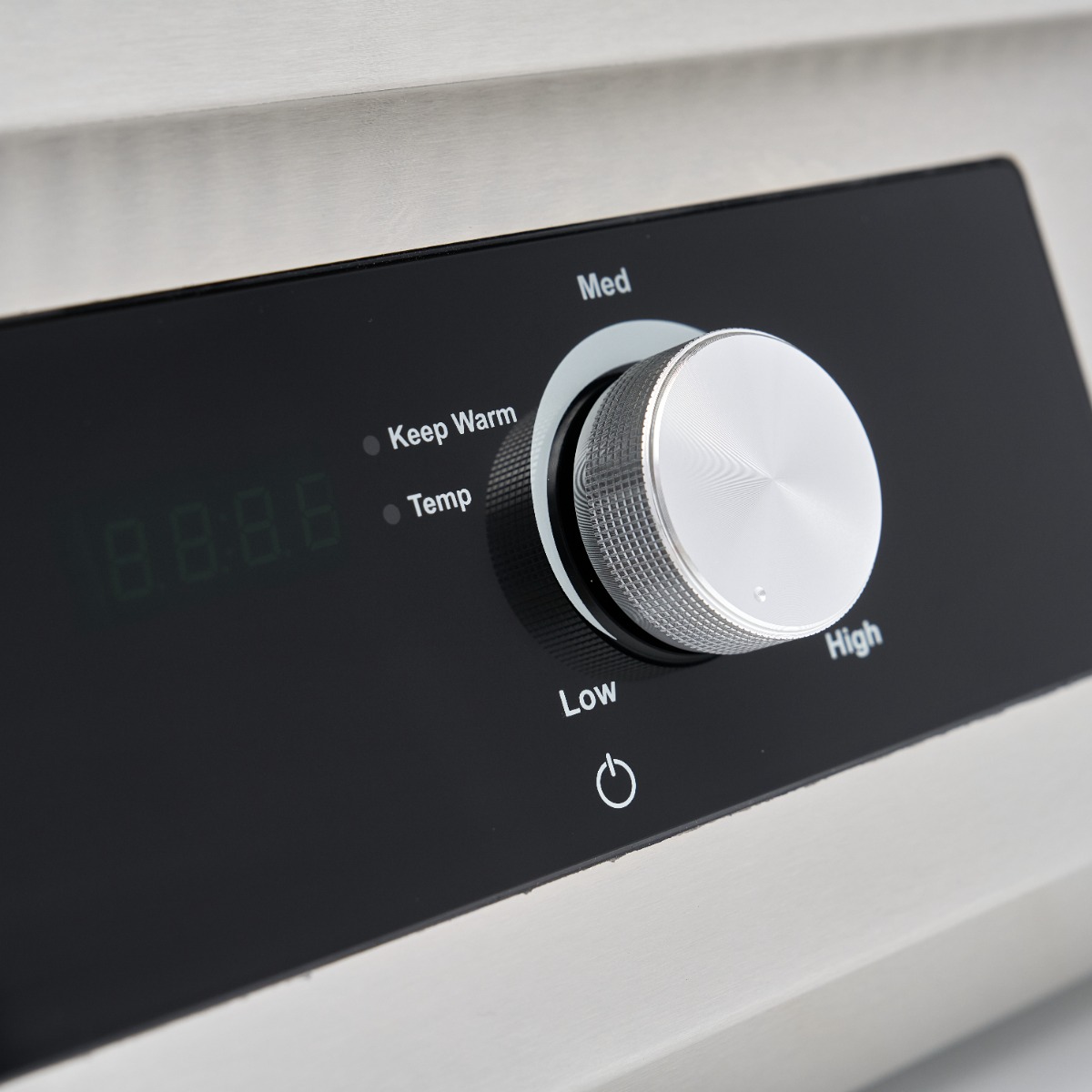 Einfache BedienungDie Temperatur lässt sich mühelos über den Drehknopf mit drei visuellen Zonen einstellen: "Niedrig", "Mittel" und "Hoch". Diese entsprechen einem Temperaturbereich von 80°C bis 300°C, der auf dem Digitaldisplay deutlich angezeigt wird. Die Temperatur ist in Schritten von 20°C einstellbar. Während des Aufheizens zeigt das Gerät "Heating" an. Sobald die gewünschte Temperatur erreicht ist, schaltet es automatisch auf Warmhalten" um. Obwohl es keine Timerfunktion gibt, verfügt diese Doppelgrillplatte über ein eingebautes Sicherheitssystem, das sich nach vier Stunden automatisch abschaltet. Eine sichere und energieeffiziente Induktionsgrillplatte für die Profiküche.
