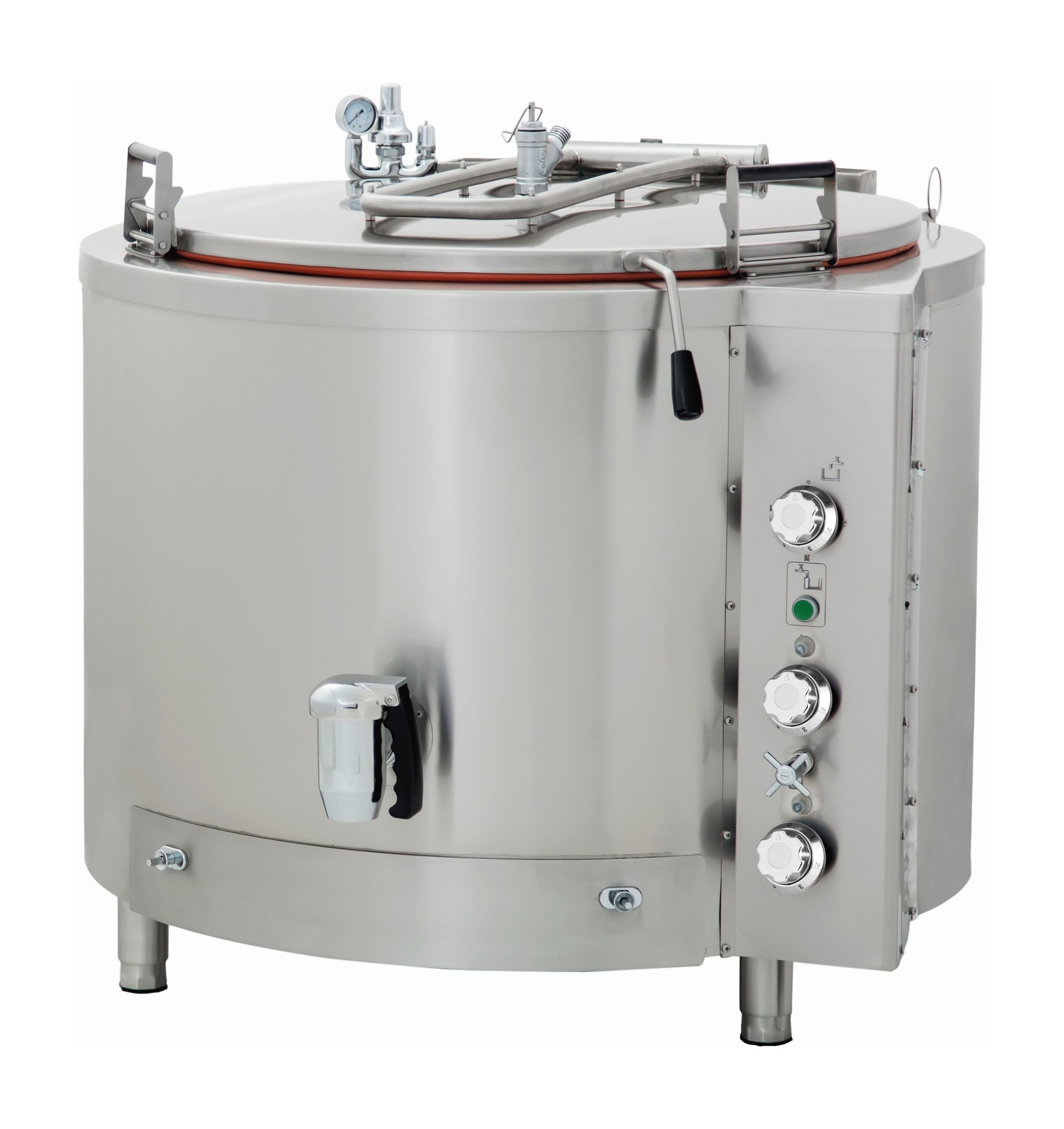 Sehr benutzerfreundlichEin Ablassventil ist immer hilfreich, denn damit lässt sich der Inhalt des Kochtopfes leicht entleeren. Der Deckel eines Kochtopfs ist oft groß und schwer, aber dank des Gewichtsmechanismus lässt er sich immer leicht öffnen und schließen, was ihn sehr benutzerfreundlich macht. Durch die Verwendung von rostfreiem Stahl in der gesamten Konstruktion des Kochtopfes und die runde Form ist das Gerät immer leicht zu reinigen. Und schließlich sorgen die stabilen Füße dafür, dass dieses Kraftpaket immer fest an seinem Platz bleibt.