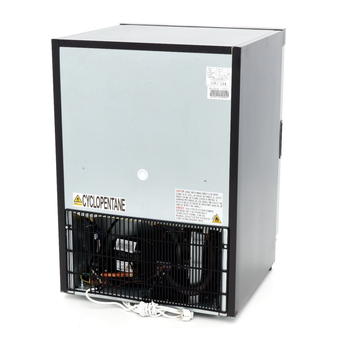Wenn man mit frischen Zutaten arbeitet, ist es wichtig, einen Kühlschrank zu haben, der alles so lange wie möglich kühl hält. Dieser professionelle schwarze Kühlschrank hat ein Bruttofassungsvermögen von 200 l und ist mit drei verstellbaren Einlegeböden ausgestattet. So können Sie je nach Bedarf die beste Einteilung wählen. Außerdem bietet er die Möglichkeit, die Anzahl der Einlegeböden für zusätzliche Fächer zu erweitern. Die Glastür ist mit einem Schloss versehen, so dass Sie die gekühlten Produkte sehen können, ohne den Kühlschrank zu öffnen.
