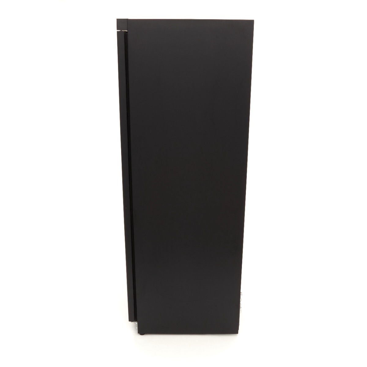 Dieser schwarze Kühlschrank hat ein Bruttofassungsvermögen von 600 l und bietet ausreichend Platz, um Lebensmittel und Getränke zu kühlen. Er ist mit vier verstellbaren Einlegeböden ausgestattet, so dass Sie die Anordnung leicht anpassen können. Außerdem ist er mit zwei verstellbaren Vorderfüßen und zwei Hinterrädern ausgestattet, so dass er bei Bedarf leicht bewegt werden kann.