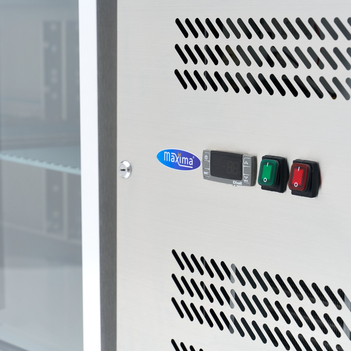 Geräumiger ThekenkühlschrankDies ist der größte Thekenkühlschrank im Maxima-Sortiment, mit nicht weniger als vier Türen und einem abschließbaren Kompressorfach. Die Kühltheke hat sechs Räder mit Bremsen an den Vorderrädern. So lässt er sich leicht bewegen. Die vier Glastüren sind mit robusten Griffen und beheizten Türdichtungen ausgestattet, um ein Einfrieren zu verhindern. Die Türen schließen dank der magnetischen Türdichtungen selbsttätig, so dass keine kalte Luft verloren geht, wenn die Tür nicht richtig geschlossen ist. Außerdem können Sie leicht sehen, wo Ihre Sachen gelagert sind, so dass Sie die Türen nicht unnötig öffnen müssen. Wenn Sie Zutaten nachbestellen müssen, können Sie schnell sehen, wie hoch Ihr Vorrat ist.
