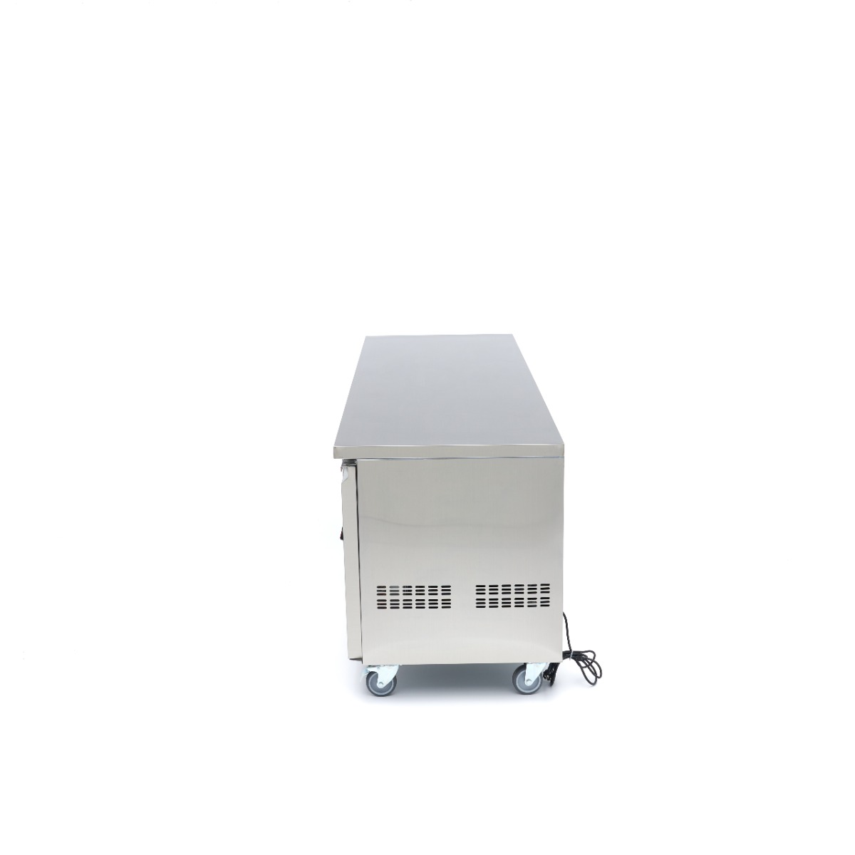 Dieser Thekenkühlschrank kann einen großen Vorrat an gekühlten Produkten aufnehmen. Dieser Kühlschrank hat eine geräumige Arbeitsfläche mit einer Breite von 223 cm und einer Tiefe von 70 cm. Es gibt genügend Platz für zwei oder drei Personen, um Vorbereitungen zu treffen oder schöne Gerichte zusammenzustellen. Und die Produkte lassen sich leicht aus der Kühleinheit unter der Arbeitsfläche entnehmen.