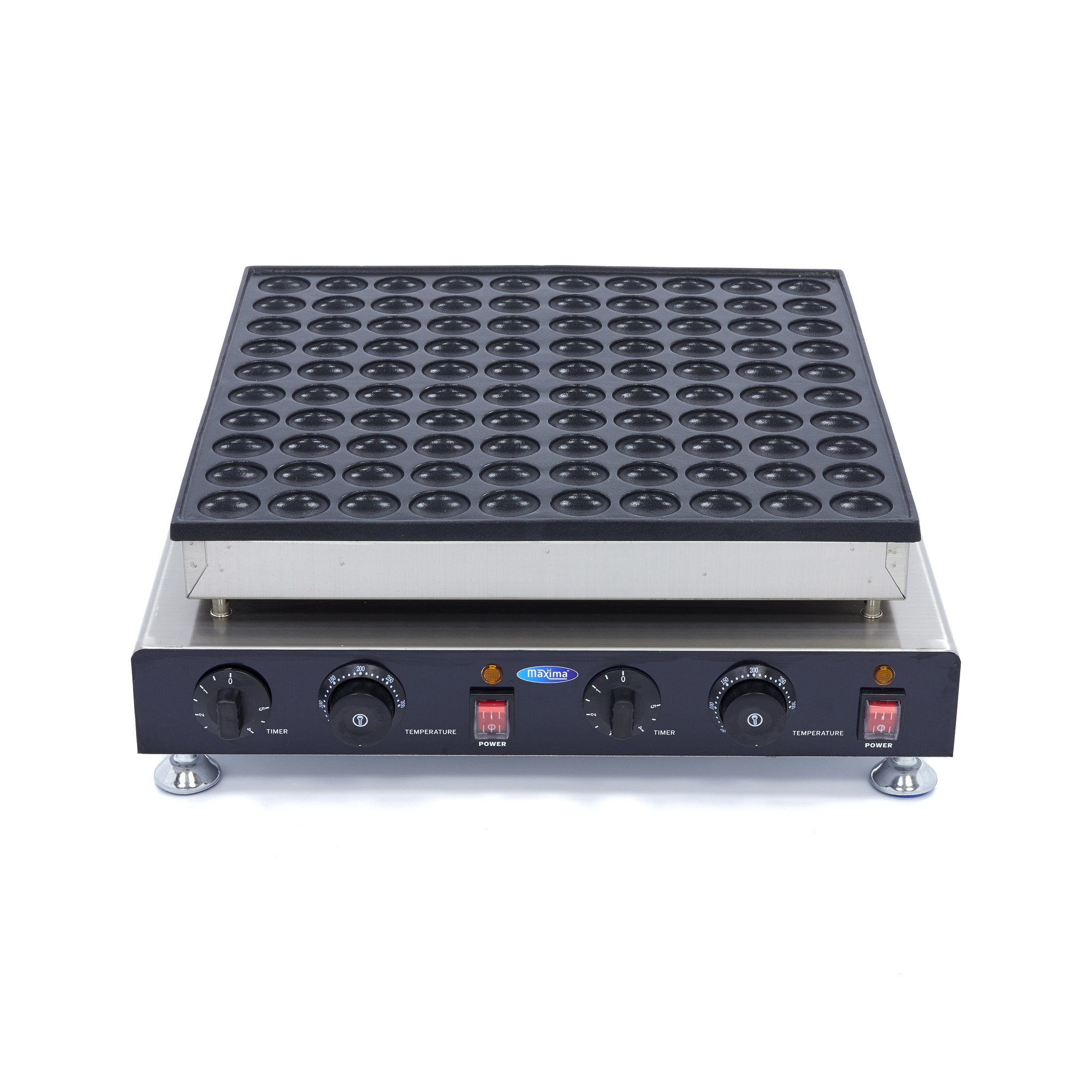 Mit dieser elektrischen Mini-Pfannkuchenmaschine können Sie schnell 100 leckere Mini-Pfannkuchen mit einem Durchmesser von 4 cm zubereiten. Mit dem analogen Bedienfeld können Sie die Temperatur und den Timer für beide Heizelemente getrennt voneinander einstellen. Die Backplatte ist aus Aluminium und hat eine Antihaftbeschichtung.