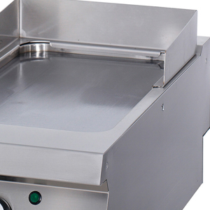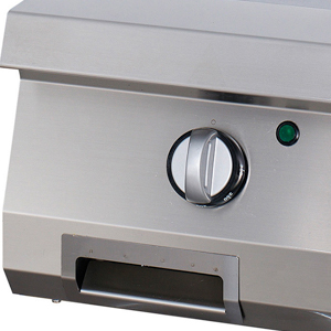 Langlebige KonstruktionDiese hochwertige Griddle wurde speziell für den Einsatz in einer Kochlinie entwickelt. Durch die Verwendung von Qualitätsmaterialien ist sie ideal für den täglichen, intensiven Gebrauch. Die glatte Grillplatte ist aus 15 mm dickem Stahl gefertigt und hat eine elegante, satinierte Oberfläche. Darunter befindet sich eine große Auffangschale mit einem Fassungsvermögen von 1,5 Litern, die das Fett während des Kochvorgangs auffängt und für Ordnung sorgt. Sie kann zum Reinigen leicht herausgenommen werden.