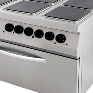 Dieser große Premium-Elektroherd verfügt über sechs Brenner und einen breiten Backofen. Mit so viel Kapazität ist dieser Herd perfekt für große, professionelle Küchen und kann zu einer 90 cm tiefen Kochzeile hinzugefügt werden. Sie können die sechs Brenner separat einstellen und der Backofen hat drei verschiedene Heizstufen.