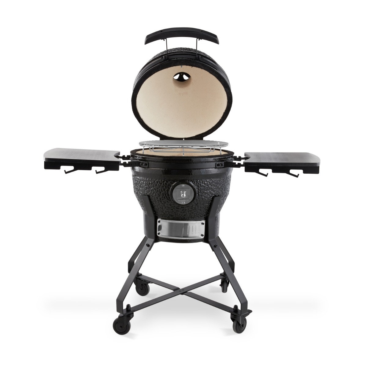 Mit diesem 39,5 cm großen Kamado BBQ können Sie fast alles zubereiten, was Sie wollen. Mit seinen Optionen zum Kochen, Backen, Dämpfen und langsamen Garen ist dieser Keramikgrill ein echtes Multitalent. Für zusätzlichen Komfort ist er außerdem mit praktischen Rädern und Seitentischen ausgestattet.
