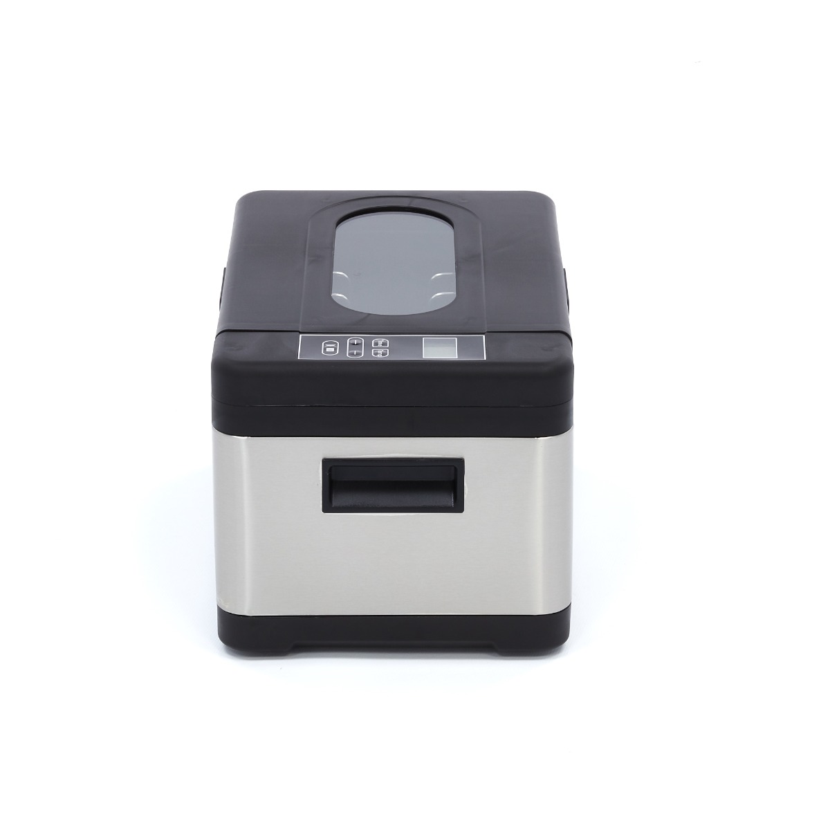 Beispiellose Präzision von 0,3ºCIn diesem professionellen Sous-Vide-Gerät mit einem Fassungsvermögen von 8,5 Litern wird das Wasser im Wassertank langsam erhitzt. Die Lebensmittel verbrennen oder zerfallen nicht, da das Wasser nicht heißer als 90 ºC werden kann. Sowohl die Temperatur als auch die Zeit können separat eingestellt werden. Außerdem hat dieses Sous-Vide-Gerät eine Genauigkeit von 0,3ºC. Dank des gleichmäßigen Wasserflusses bleiben die Textur und die Nährstoffe erhalten. Das LCD-Display ist digital und das Bedienfeld ist dank der Touch-Tasten einfach zu bedienen. Das Sous-Vide-Gerät ist außerdem mit einer thermischen Sicherheitsvorrichtung ausgestattet und das Netzkabel ist abnehmbar.